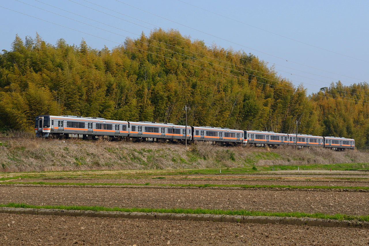 | 2026.3/28 伊勢鉄道 河芸〜東一身田 キハ75形6連 9751D Nikon D610+AF-S NIKKOR 24-85mm f/3.5-4.5G ED VR (美濃太田区のキハ75形6連が伊勢鉄道を走る貴重なシーンは記録に残しておきたい) |