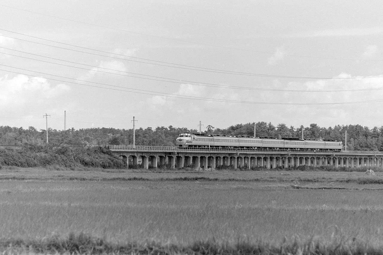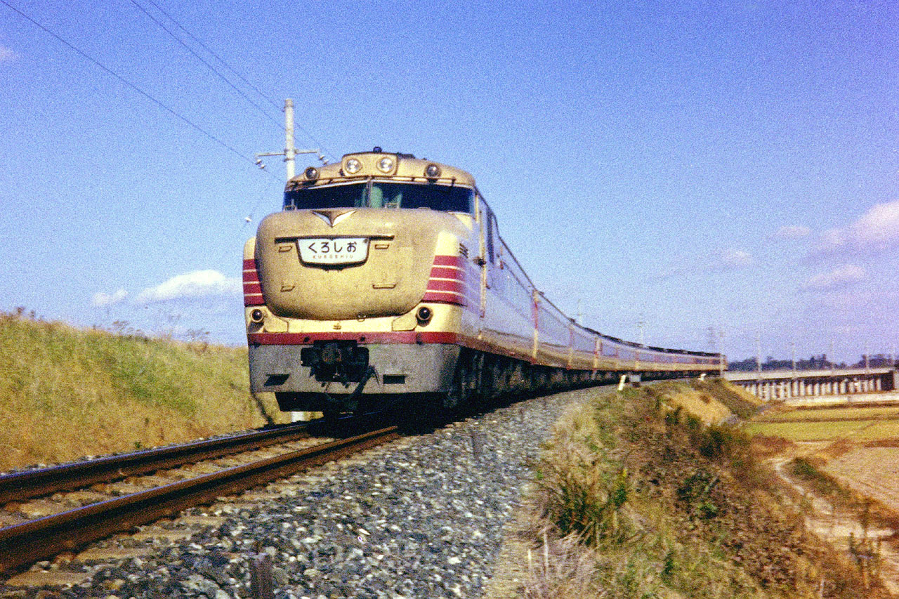 | 1978.9/5 伊勢線 河芸〜東一身田 キハ81系 特急くろしお 5D PENTAX SP+SMC135mm f/3.5 KodacolorU (上の写真と同じ場所を行くキハ81系くろしお、1978年10月のダイヤ改正で引退しました) |